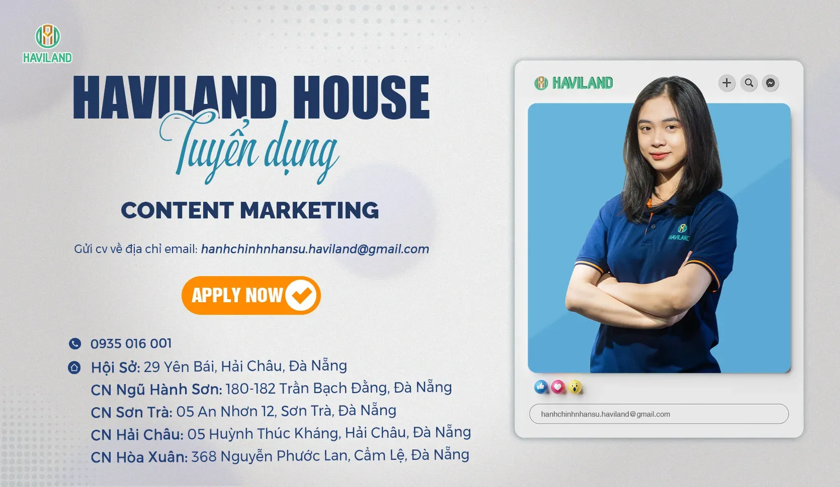 Haviland House tuyển dụng Chuyên viên Content Marketing mức lương cơ bản 7.000.000 đến 9.000.000 VNĐ, môi trường năng động, cơ sở vật chất tiên tiến