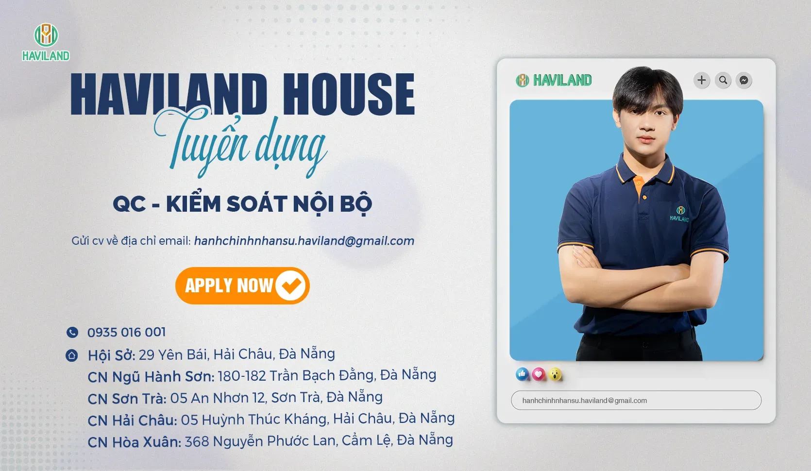 Haviland tuyển dụng chuyên viên QC - Pháp lý Lương cơ bản từ 6.000.000đ - 8.000.000đ + thưởng tháng/quý, lương tháng 13...