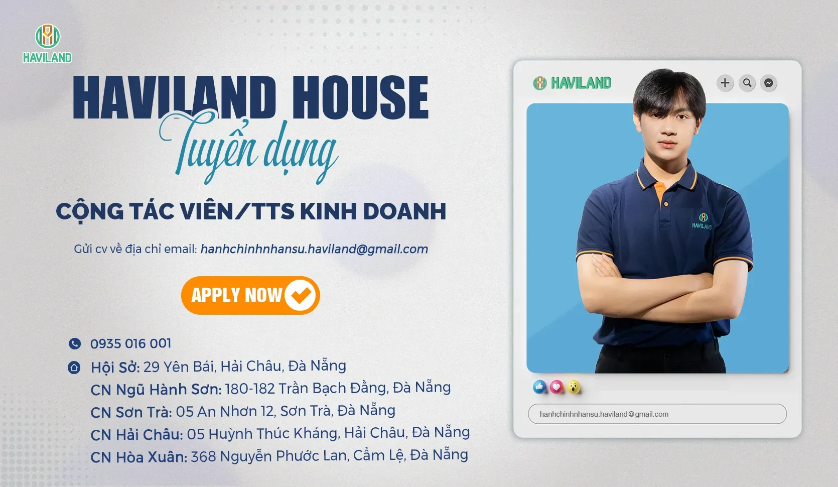 Haviland House tuyển dụng thực tập sinh kinh doanh, mức thu nhập 1.200.000- 3.500.000đ + thưởng nóng (up to 2 đến 6 triệu). Hãy xem ngay!